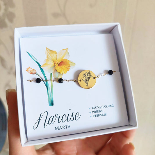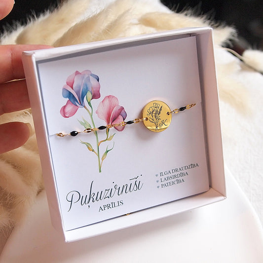 Personalizēta melnā turmalīna aproce ar mēneša ziedu