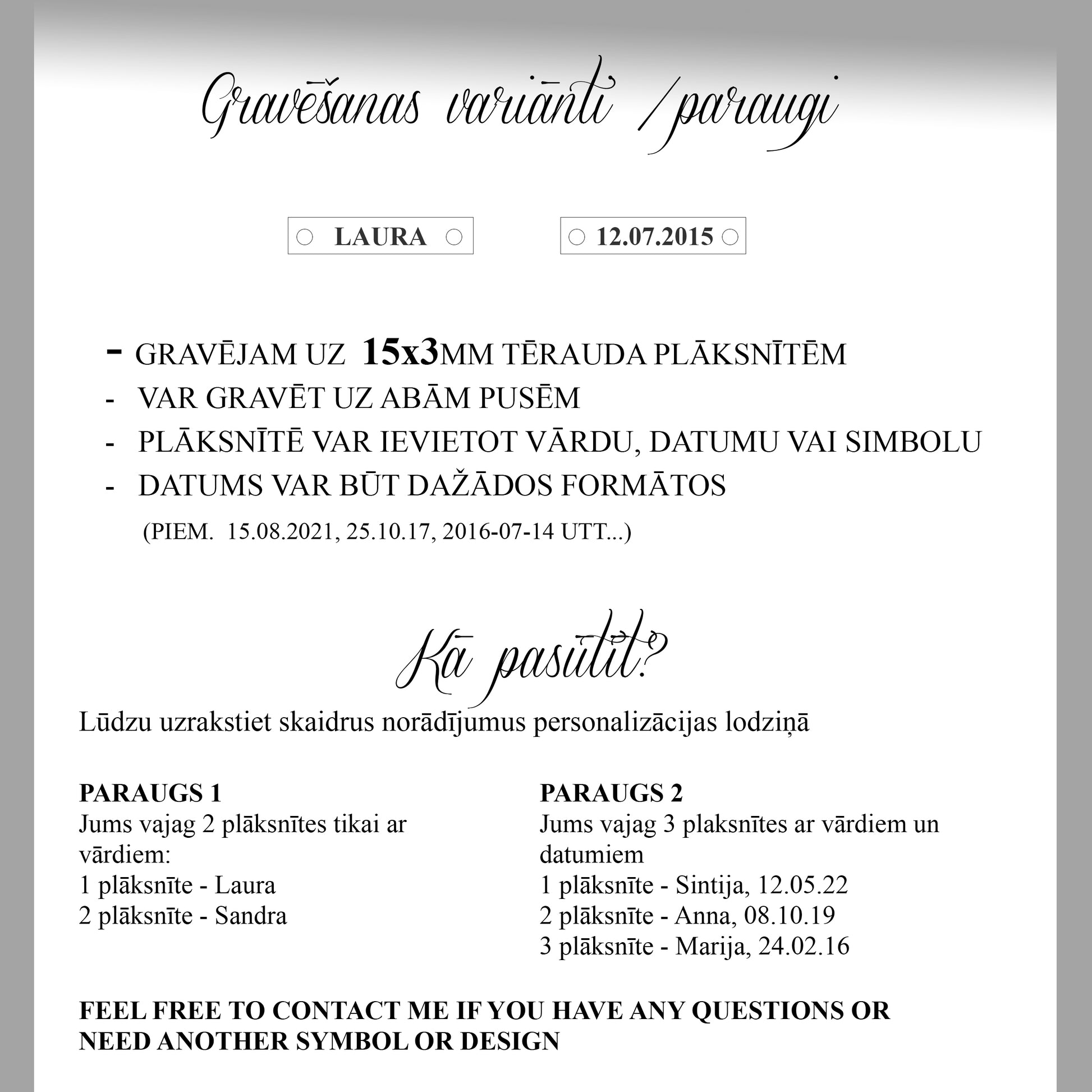 - nerūsējošā tērauda ķēdīte un plāksnītes (zelta vai sudraba krāsā)